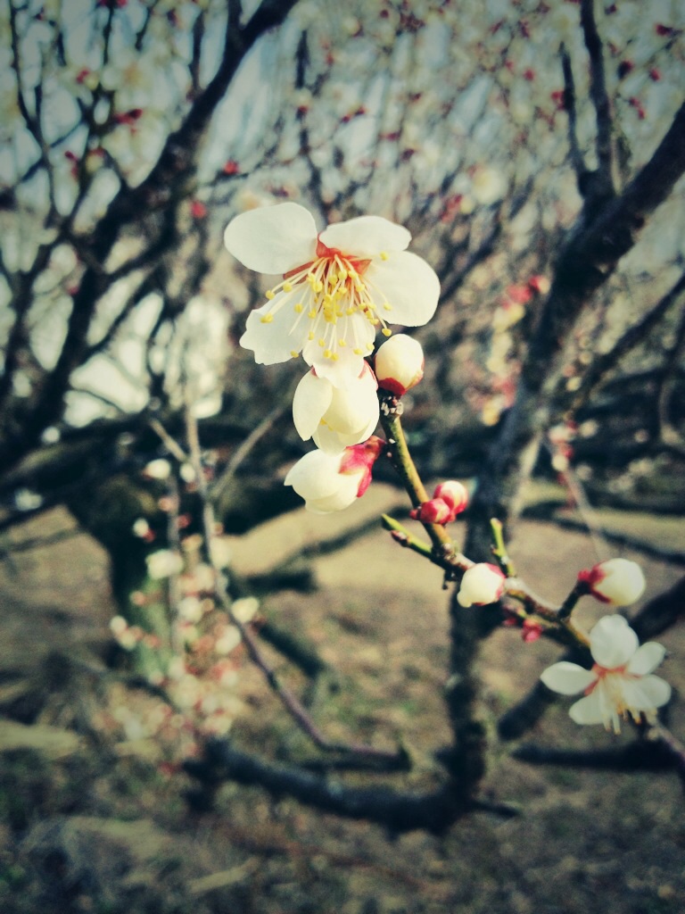また抱っこしてもらって写真撮っていたら美月がいきなり梅を食べようとしました。いい匂いがするからでしょうか。食べる前に阻止できましたが……。