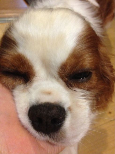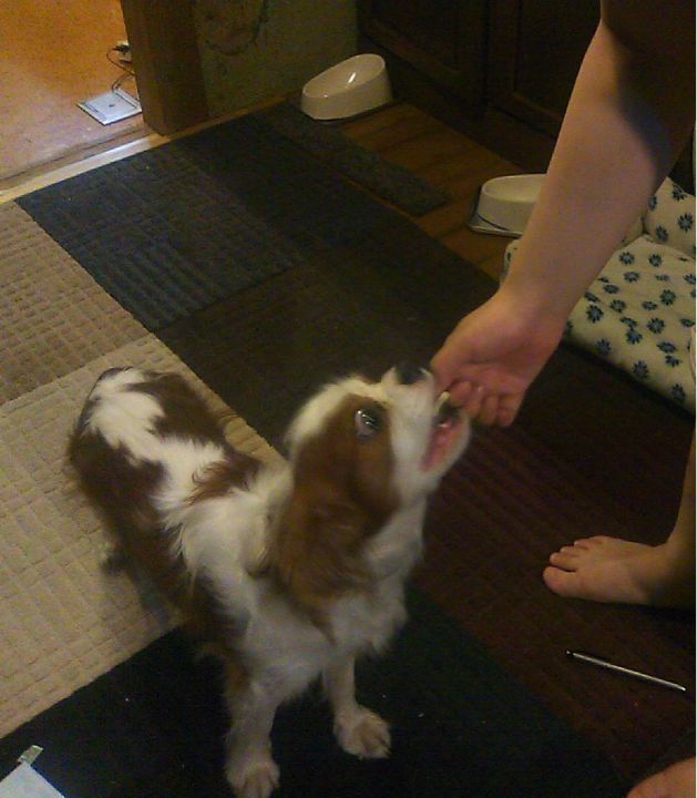 ちょろちょろちょろちょろして、自分から頭を私の脚にぶつけてみたり、今日のクッキーは人間用なのに「くれないかなー」っとでもいうかのような目でじーっとこっちを見てきたり。